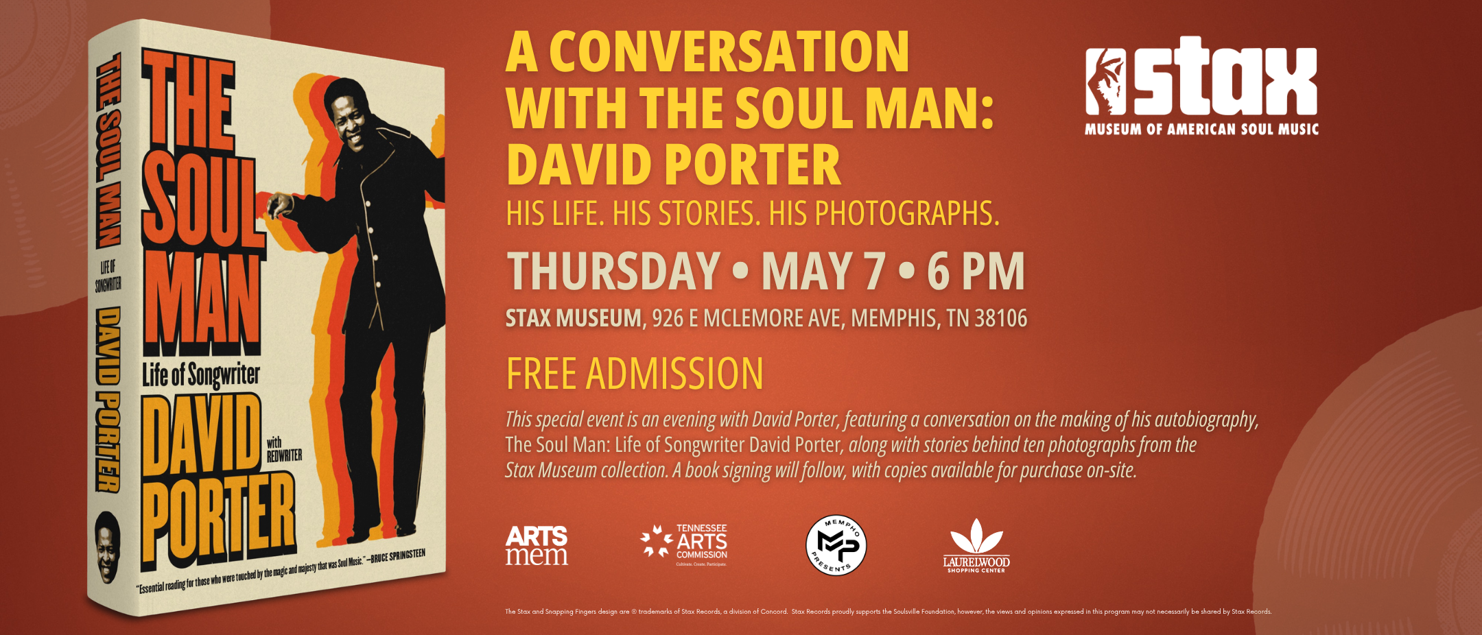 Whether you’re a lifelong fan of soul music, a student of music history, or simply curious about the stories behind one of Memphis’s most influential cultural institutions, this evening offers a rare chance to experience Stax through the eyes of someone who helped build its legacy.